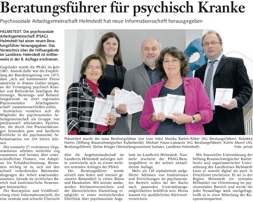 Arbeitsgemeinschaft (PSAG) im Landkreis Helmstedt vorlegen zu können.